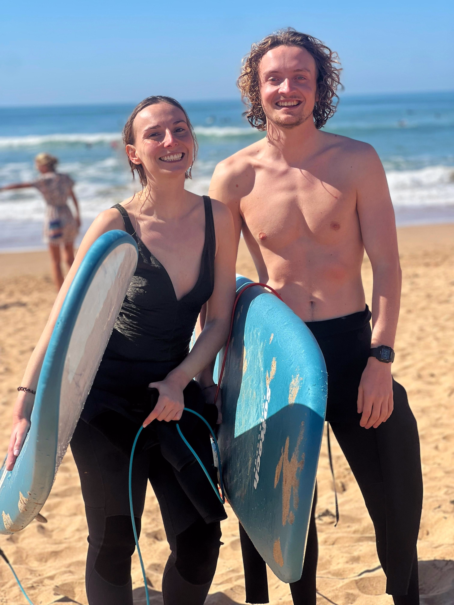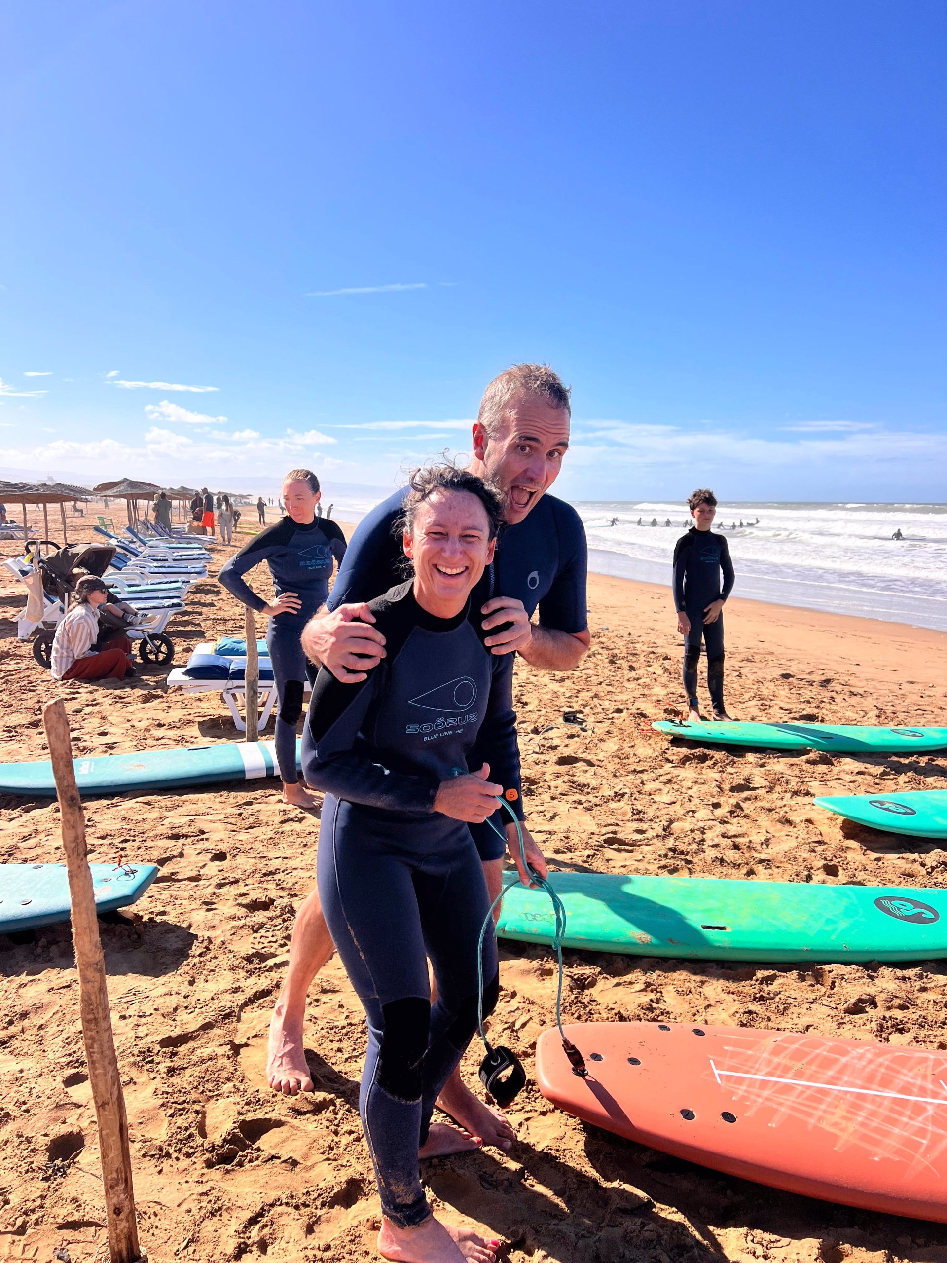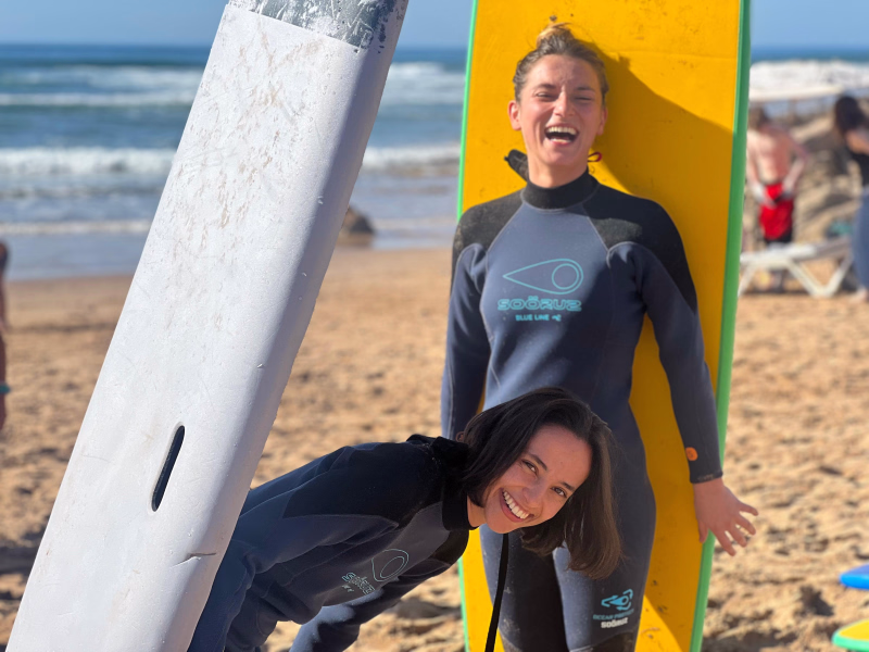 🕙 À 10h, cap sur le spot de surf 🏄♀️ ! Vous profitez d’un cours adapté à votre niveau (débutant ou intermédiaire), encadré par des pros.