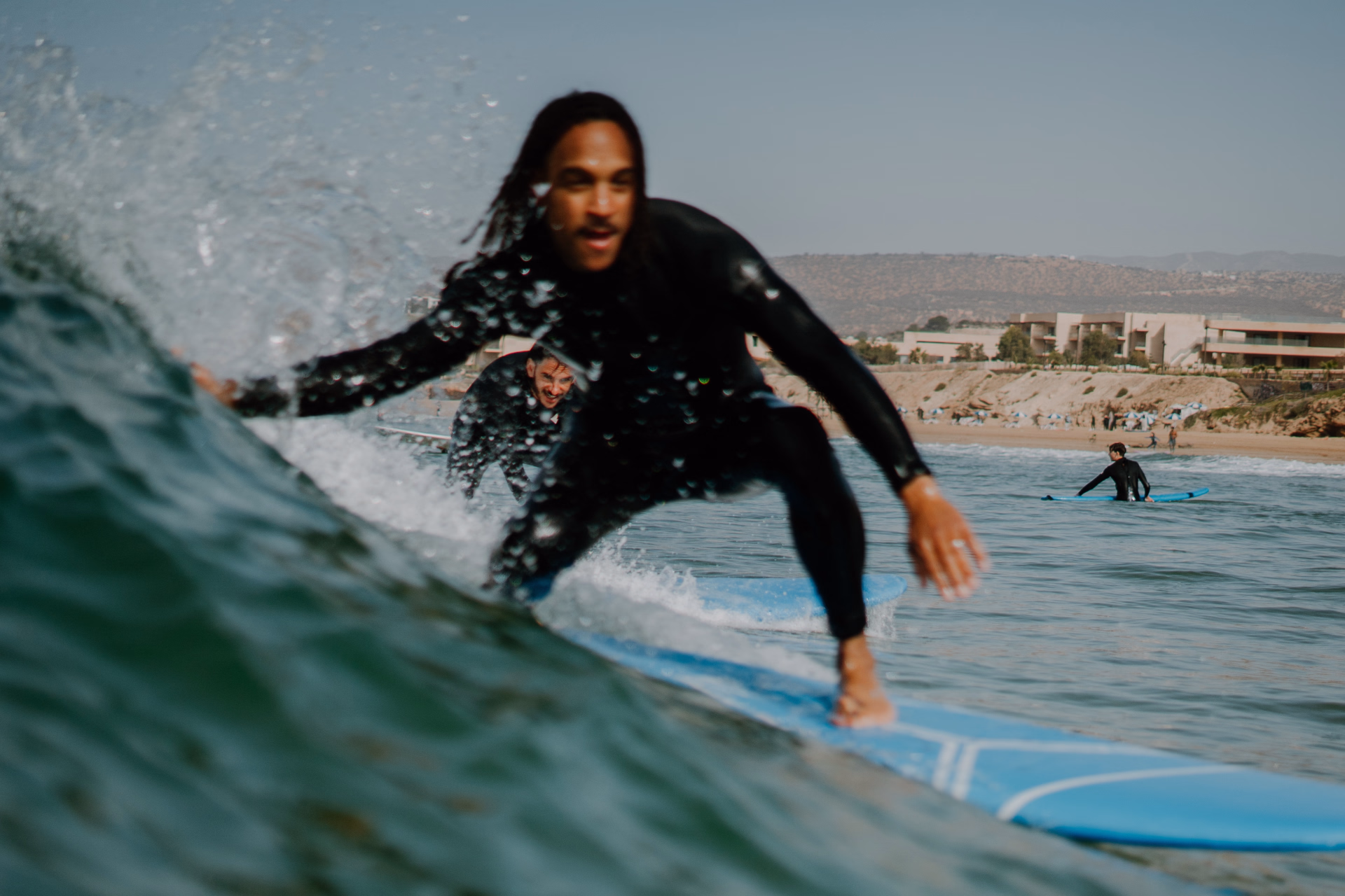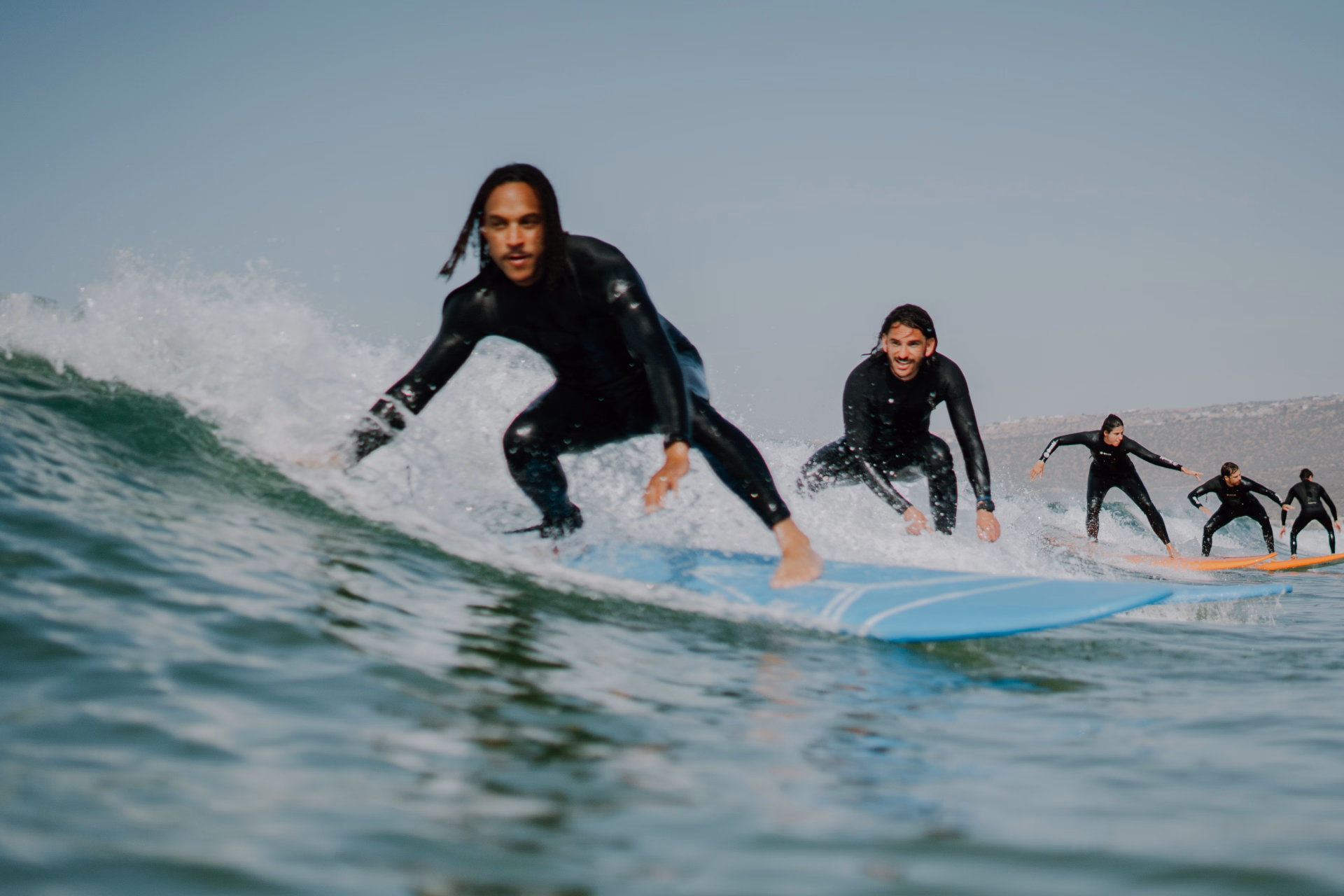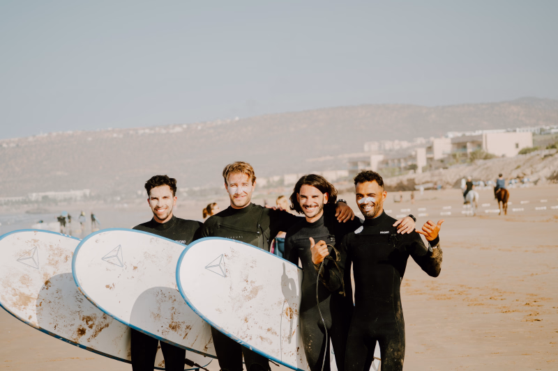Vos encadrants Omar, Hamid et Ismael se sont imposés comme des figures incontournables de la plage ! Avec leur sens de l’écoute, leur approche personnalisée et leur énergie toujours positive, ils accompagnent nos surfeurs débutants comme confirmés dans une progression à la fois technique et humaine.