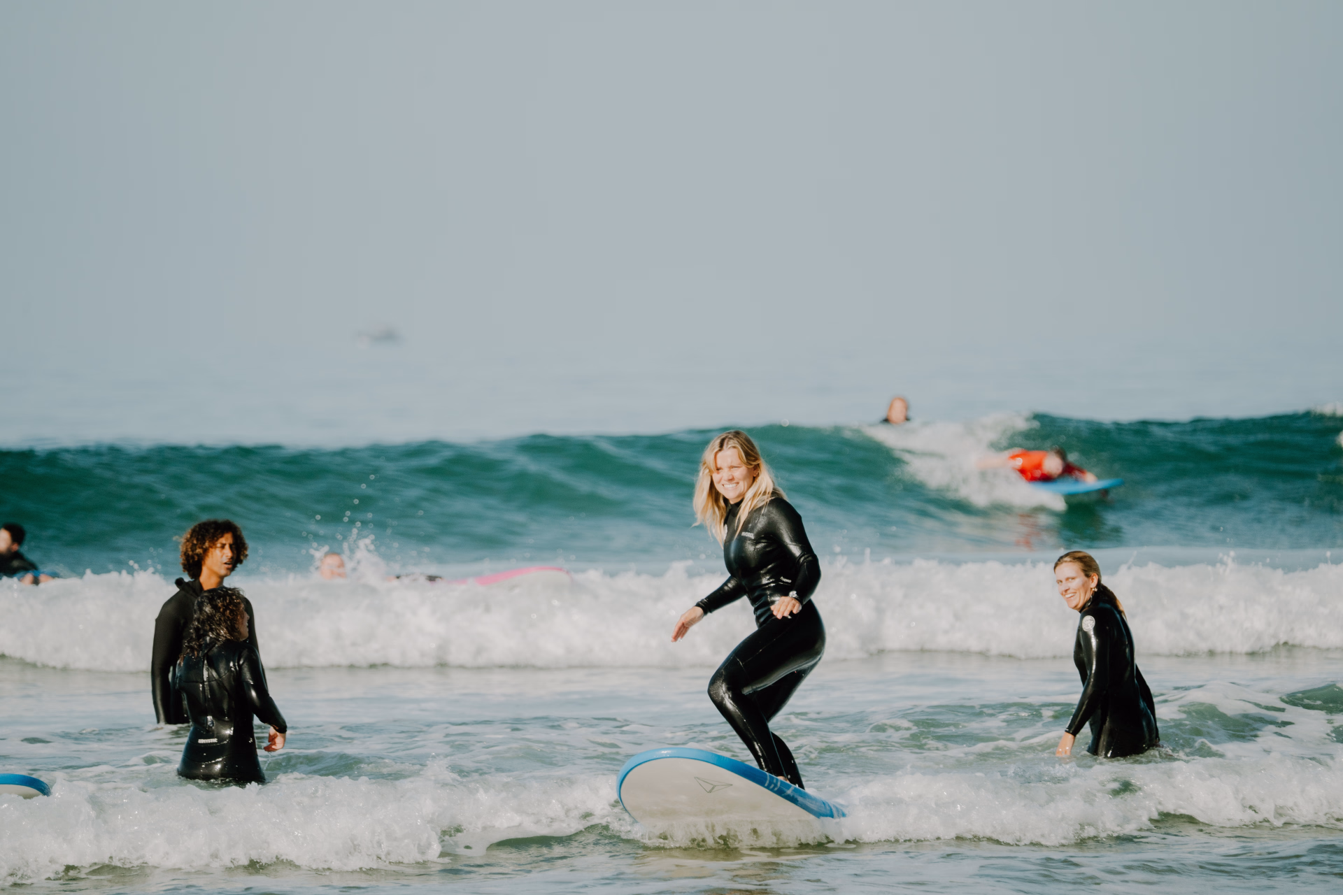 - 5 journées de surf collectif avec (échauffement, théorie sur la plage et 2h de pratique dans l'eau avec l'instructeur et free surf l'après-midi pour mettre en pratique les conseils prodigués)