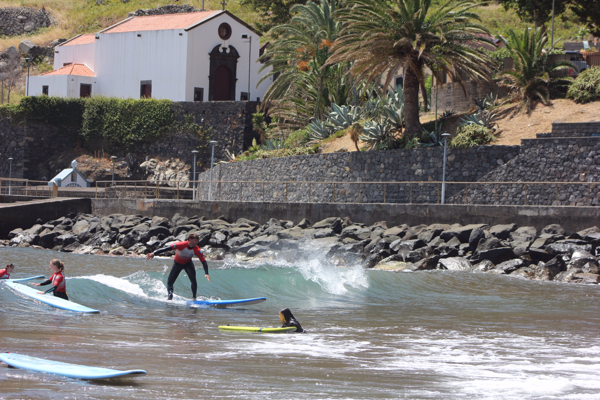 Le programme comprend 5 séances de surf, une par jour, d'une durée de 2 heures, toujours adaptées aux conditions de la mer et au niveau des participants. Les cours ont généralement lieu à Praia de São Roque, à Machico, ou à Maiata, à Porto da Cruz, des lieux idéaux pour l'apprentissage et la progression. Chaque fois que les conditions le permettent et pour offrir des expériences différentes, les sessions peuvent également avoir lieu à Seixal (Porto Moniz) ou à Fajã da Areia, à São Vicente, des plages d'une grande beauté naturelle et des vagues de qualité.