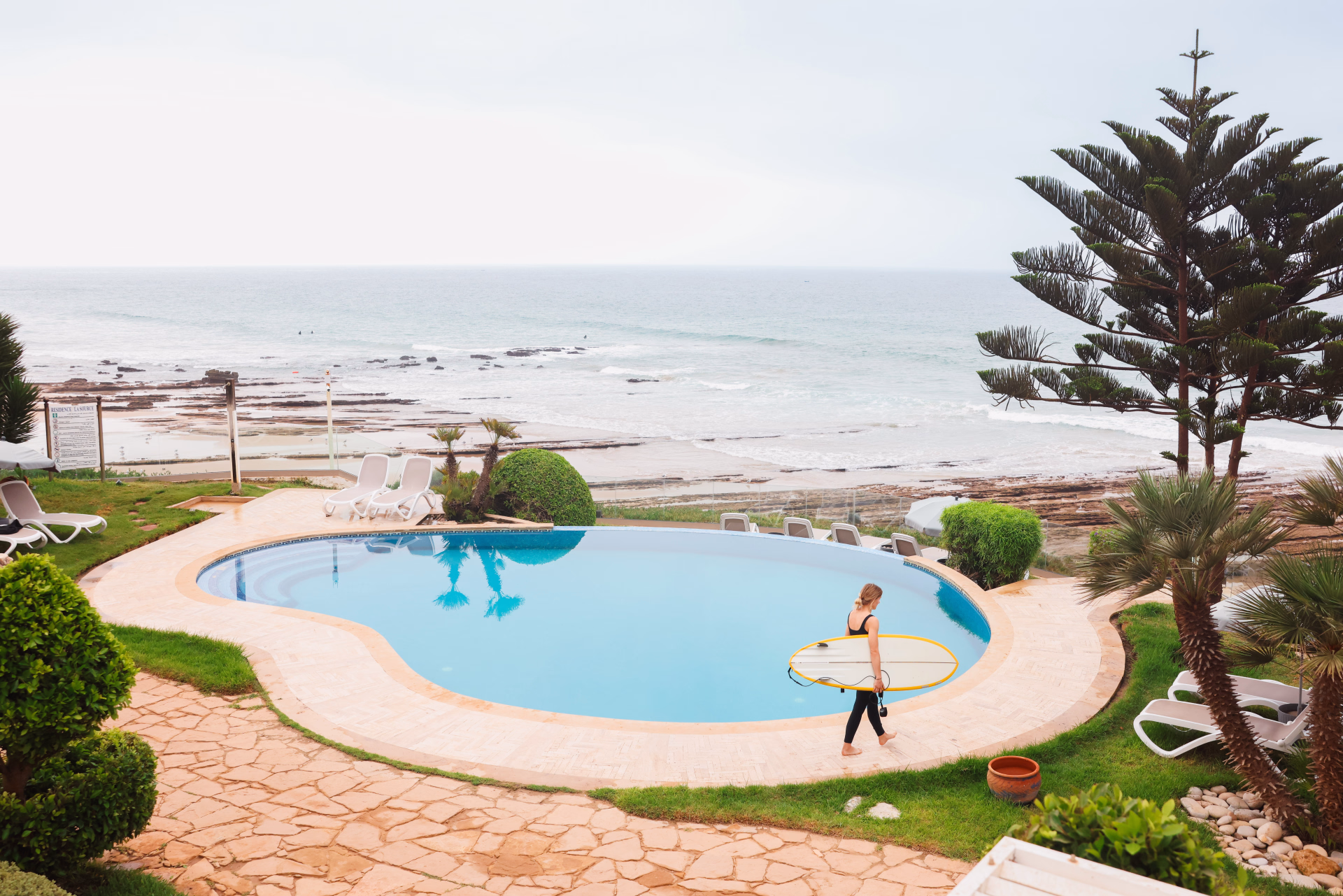 Face à l'océan, la résidence la Source avec sa piscine qui surplombe le spot de surf est un endroit magique.