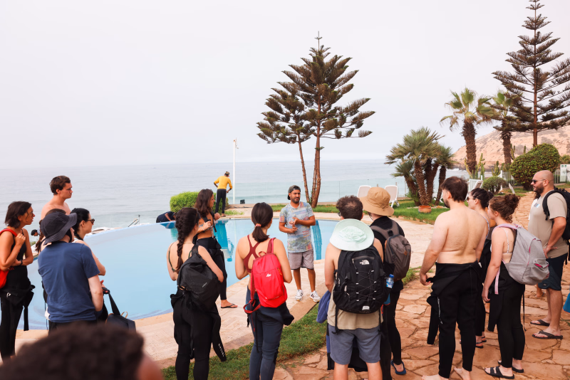 8h30 à 9h30 : Vous débuter votre journée par le petit déjeuner face à l'océan, puis votre moniteur vient vous briefer sur les conditions de vague et les différents choix d'organisation.
