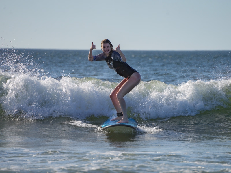 Profitez chaque jour de cours de surf avec des instructeurs certifiés et prolongez vos heures dans l'eau avec la location illimité de planches de surf