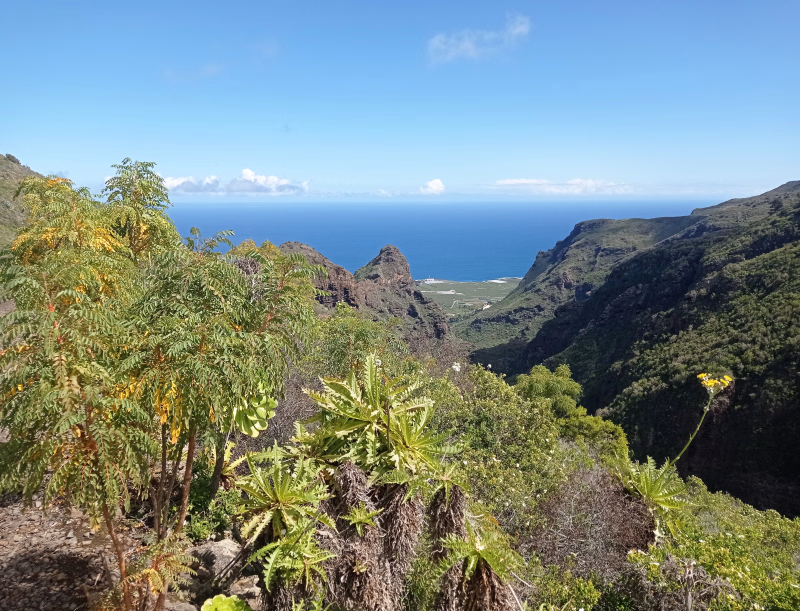 Au départ du village d’Afur, perdu au cœur du massif d’Anaga, vous partez pour une boucle variée dans l’une des régions les plus préservées de l’île. Le sentier rejoint Taganana, puis descend vers la plage de Tamadite, bande de sable noir bordée par d’imposantes falaises volcaniques sculptées par l’érosion. Après une pause face à l’océan Atlantique, vous remontez par le Barranco de Taborno, un canyon tapissé de cactus, fougères et anciennes terrasses agricoles. Une immersion complète dans les paysages contrastés et escarpés du nord-est de Ténérife.
