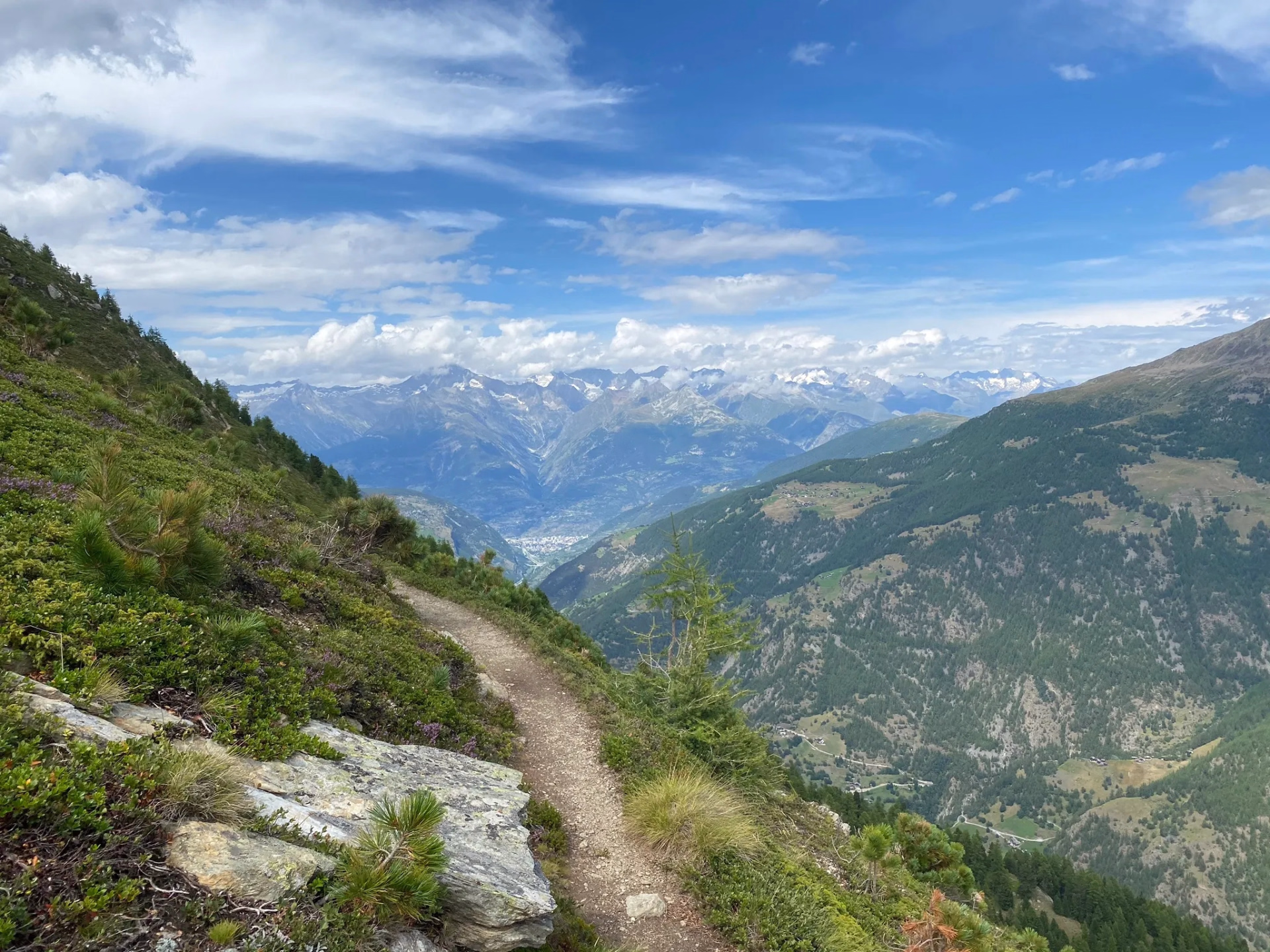 Vue magnifique sur la vallée du Rhône et sur le Weisshorn.