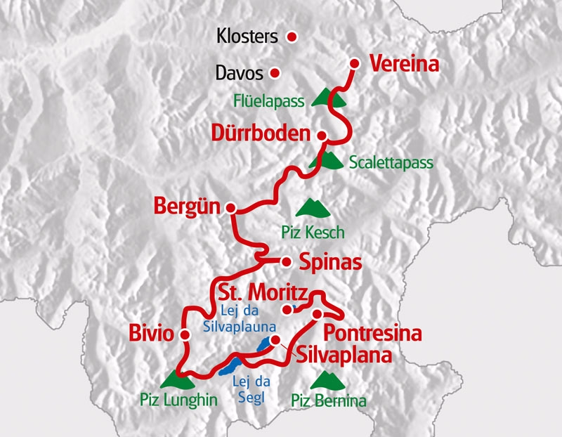 Arrivée à Klosters, en bus sur demande à Vereina. La randonnée débutera tranquillement par de vertes prairies luxuriantes, lesquelles céderont toutefois rapidement la place à la première ascension, déjà ardue, qui vous permettra d’atteindre les lacs de Jöri. Les deux cols de Jöriflüelafurgga et de la Flüela constituent des moments forts de l’étape du jour. De là-haut, vous descendrez jusqu’à l’auberge de montagne.