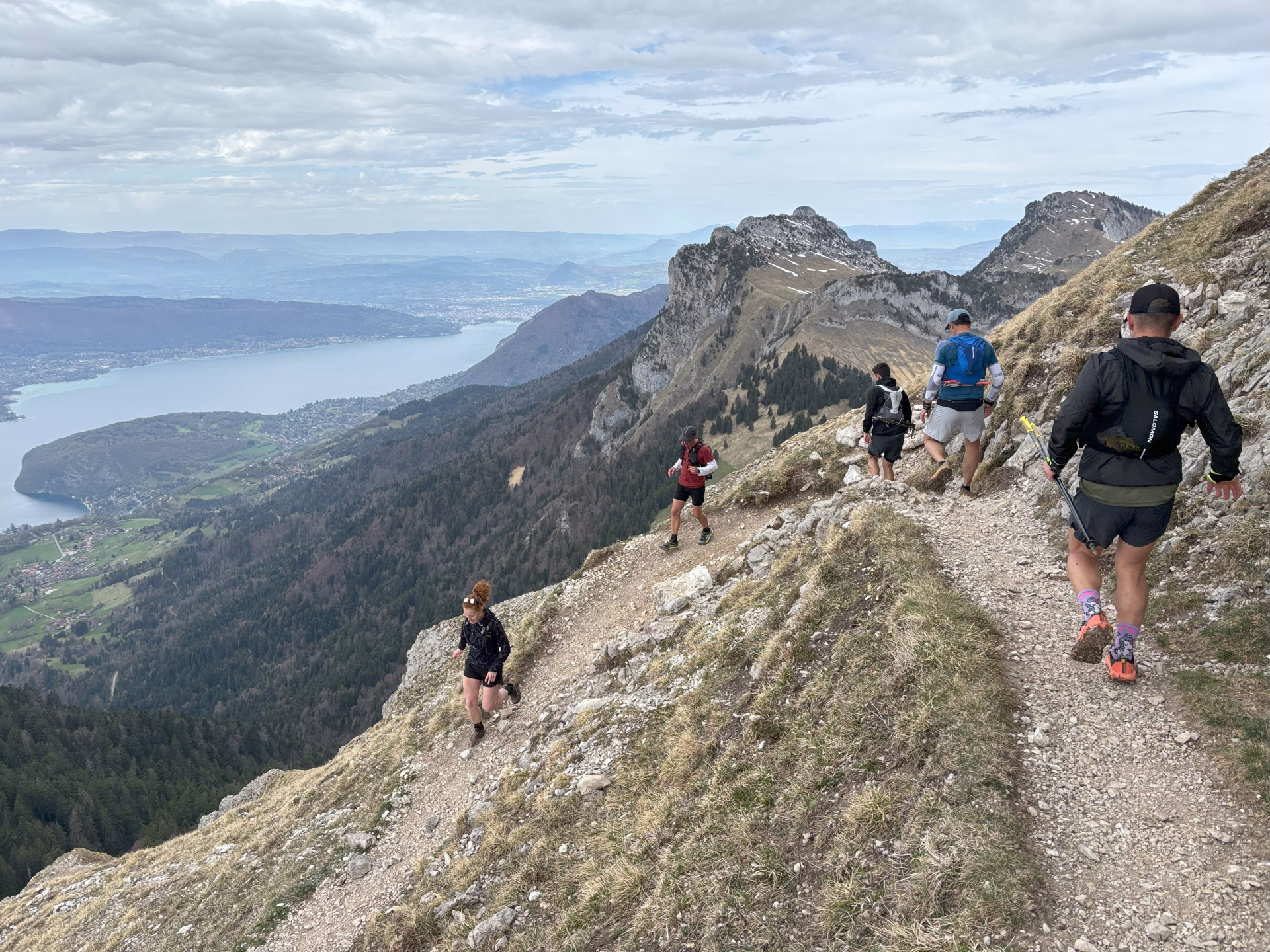 Sortie trail de 9h à 15h : boucle sur les crêtes du Mont Veyrier, Mont Baron et Mont Baret, 23 km et 1 500 m D+. Un itinéraire en balcon sur le lac d’Annecy, alternant sections techniques, passages aériens et monotraces forestiers. L’occasion parfaite pour réinvestir les acquis techniques du week-end dans un terrain varié et exigeant.