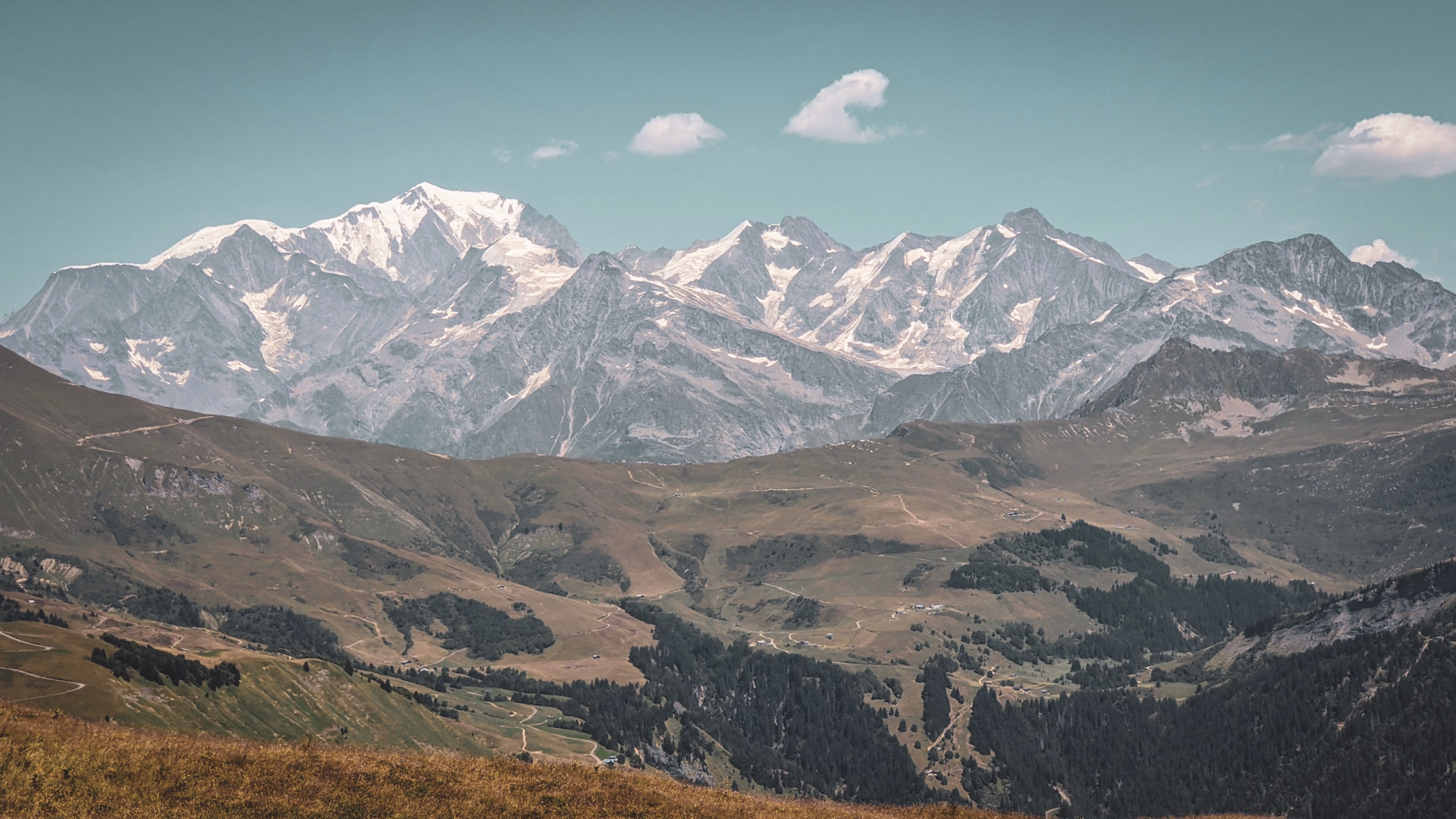 Crêtes, cols et lacs suspendus face au Mont-Blanc