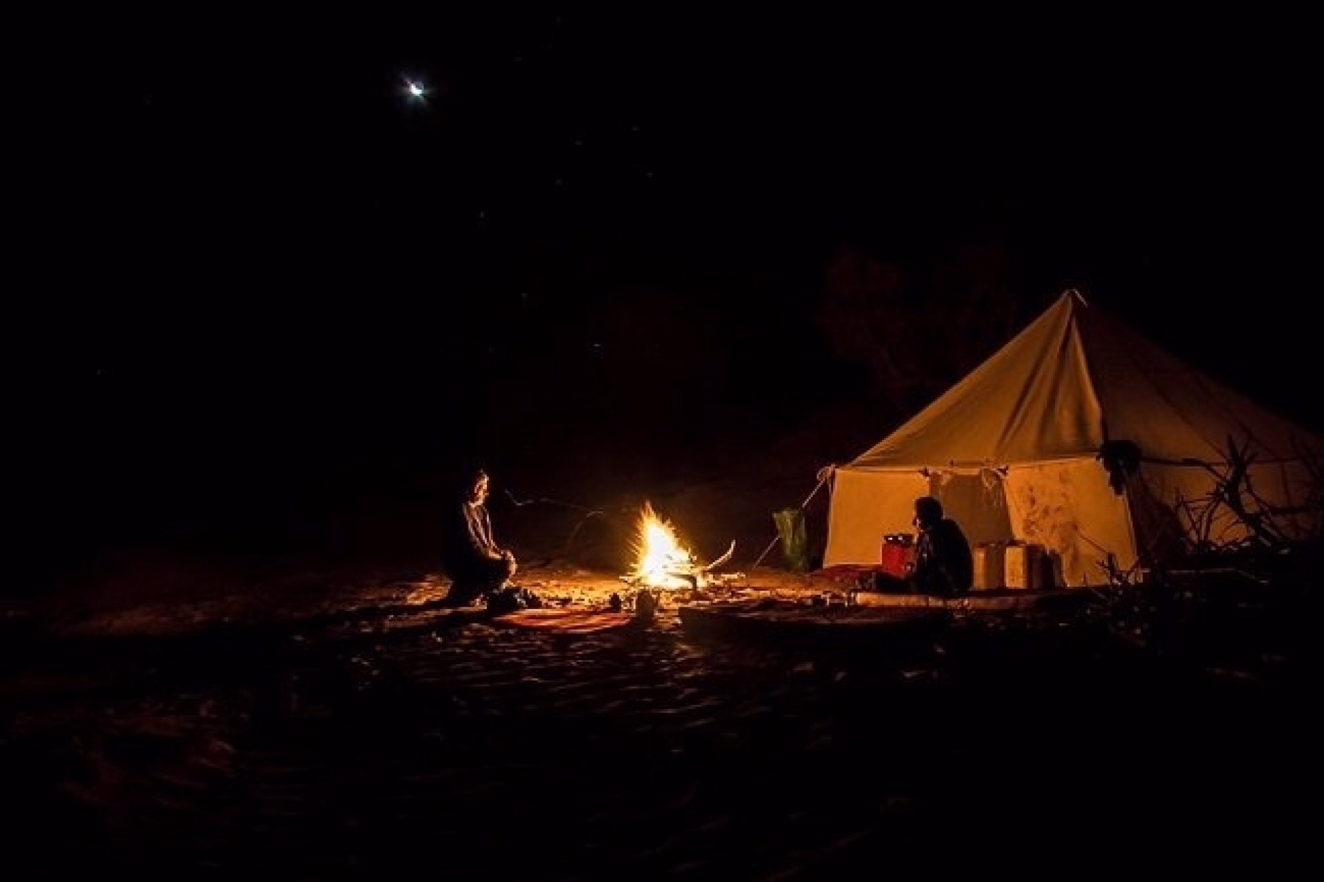 Départ à pied du campement, accompagné de notre équipe et de la caravane de chameaux. L'équipe sera composée de nomades locaux, experts du désert et de ses sentiers mystérieux.