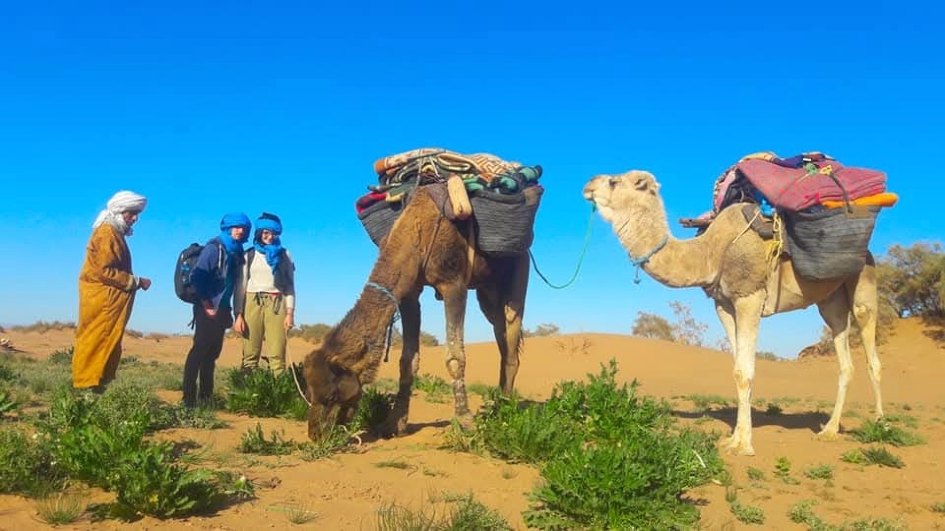 Depuis M'hamid, entamez votre trek avec dromadaires au cœur du Sahara marocain. Traversez de vastes dunes de sable, des lacs asséchés et des bosquets de tamaris, tout en perçant les secrets du désert auprès de guides berbères expérimentés. Passez 3 nuits dans le desert sauvage , savourez des repas traditionnels et imprégnez-vous de la sérénité du désert sous un ciel étoilé . Ce Trekking de 4 jours est idéal pour ceux qui recherchent une expérience marocain à la fois écologique, culturelle et riche en aventures .