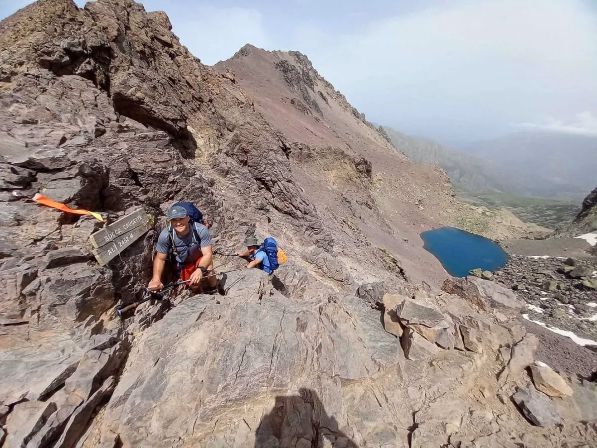 Depuis le refuge, le chemin suit le ruisseau Crucetta, grimpant régulièrement par des marches de granite et des sections de courte escalade vers le Monte Cinto. D'un côté, les vues s'ouvrent sur le Capu Rossu (2 498 m) et le Capu Larghia (2 475 m), tandis que la vallée sauvage de Crucetta s'étend en dessous. Plus haut, le sentier se dirige vers la Bocca Crucetta (2 452 m), un point de vue élevé surplombant le sombre cirque du Lac du Cinto, une crête près du Capu Falu (2 540 m). Vous continuerez ensuite sur des éboulis instables jusqu'à la Pointe des Éboulis, où vous pourrez profiter des vues sur la mer.