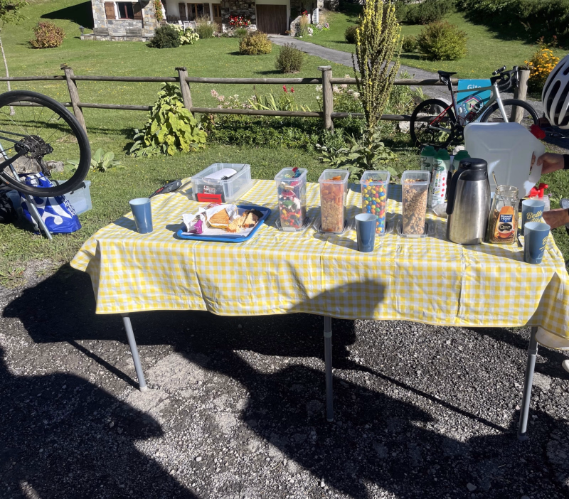 - Chaque matin, il vous retrouve sur l’itinéraire pour une pause café conviviale, puis à un point stratégique pour un ravitaillement complet à midi, avec eau fraîche, encas variés et tout le nécessaire pour repartir fort.