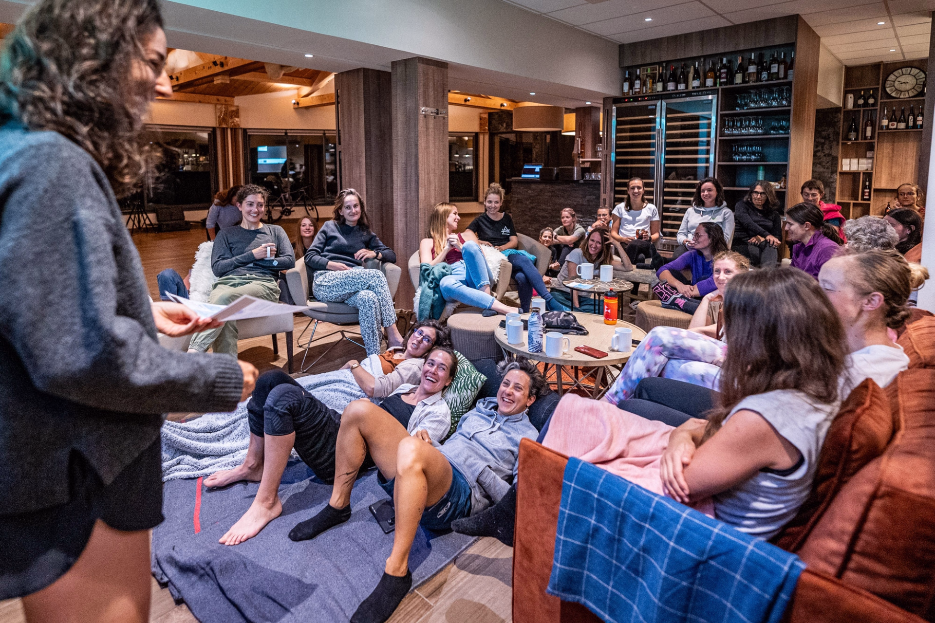 Et viennent en complément dans ces journées, des ateliers complémentaires et/ou des temps calme pour récupérer : renforcement musculaire, yoga restoratif, course à pied, natation, ateliers mécaniques, ateliers cuisine.... La journée se termine par une session d’étirements, un dîner partagé, puis une conférence sportive en soirée.