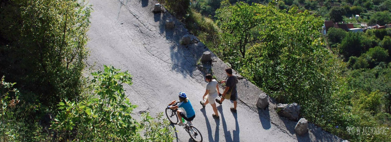 Etape a vélo en direction de Podgorica, en suivant les pentes du massif de Prekornica et la vallée de la rivière Zeta.