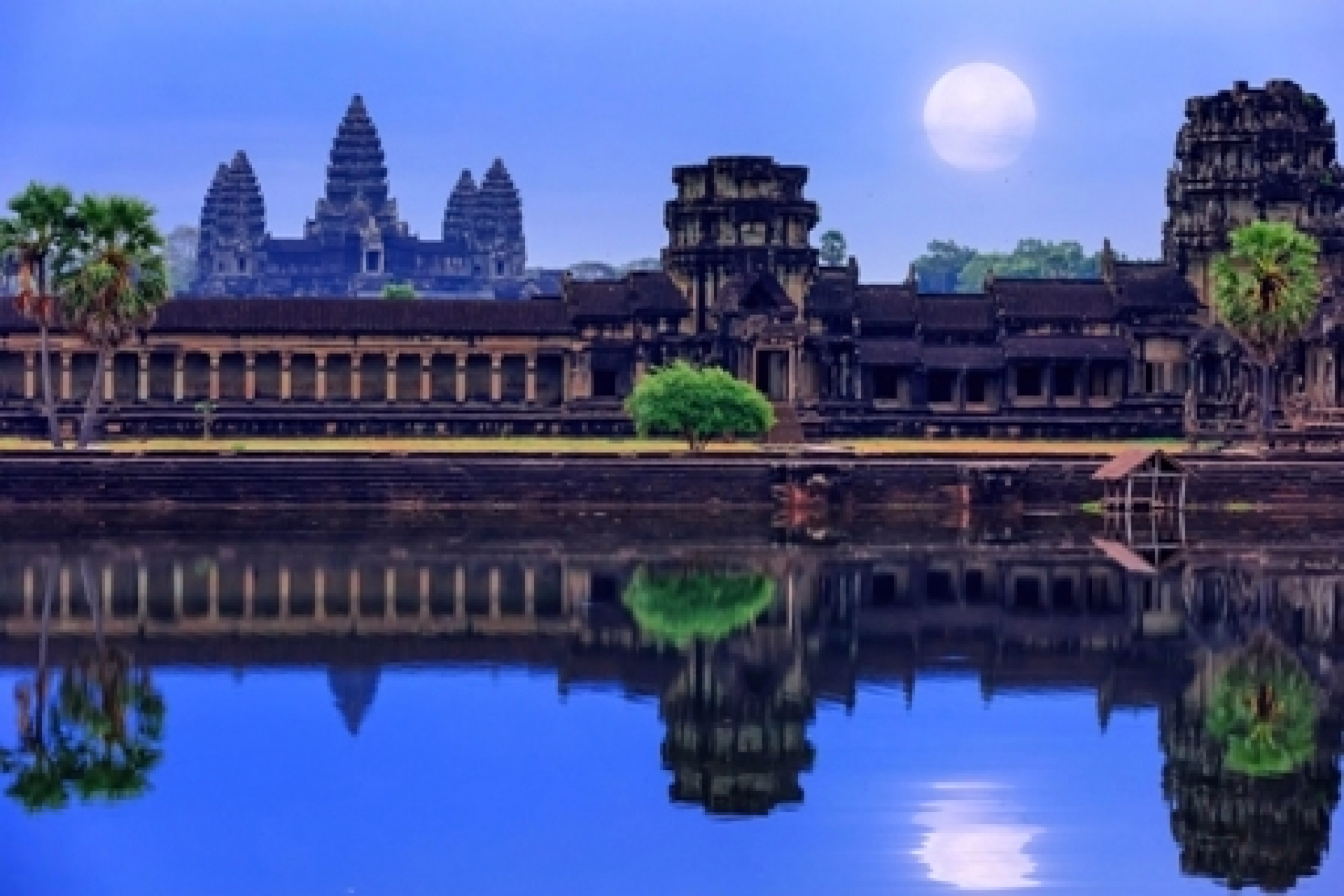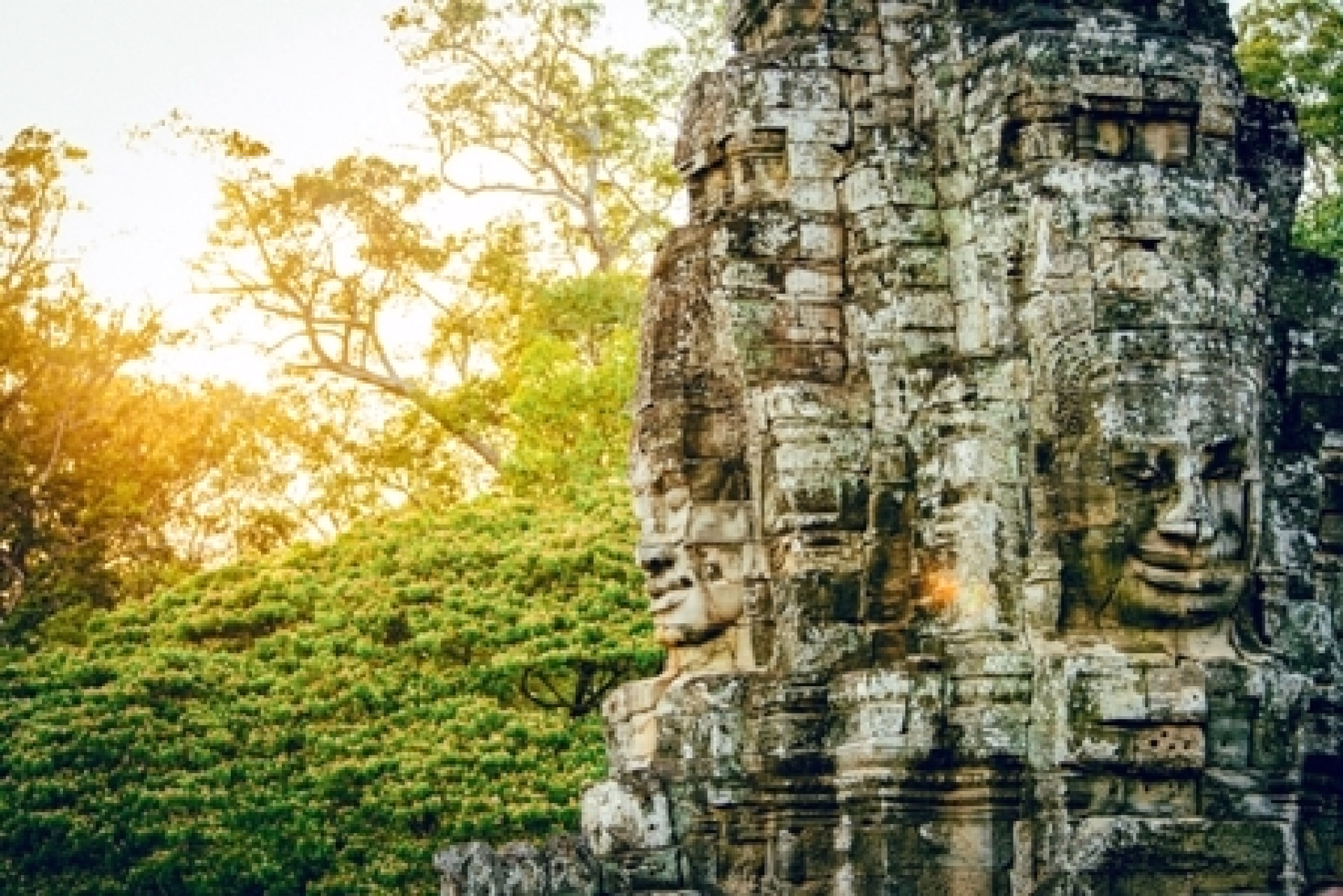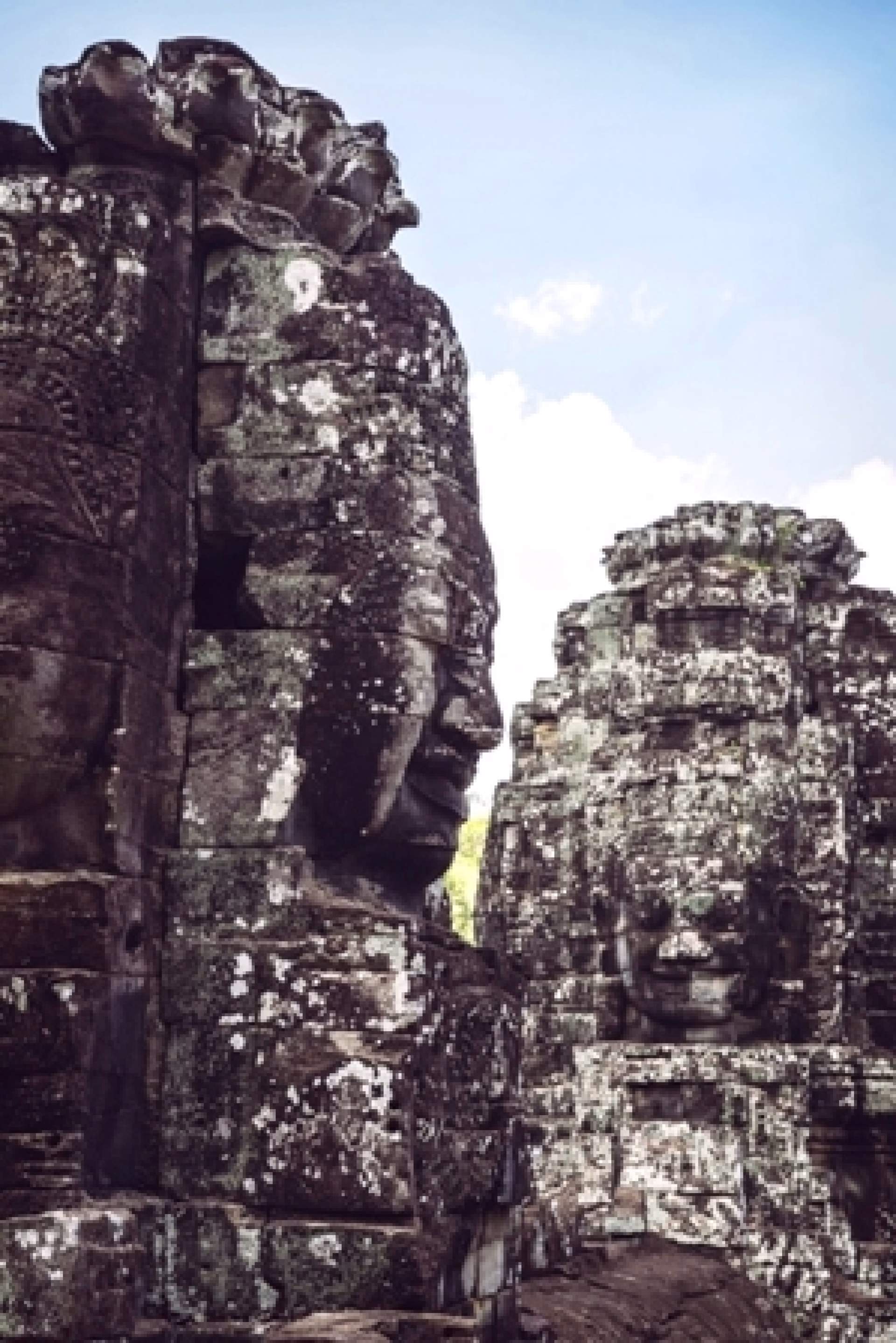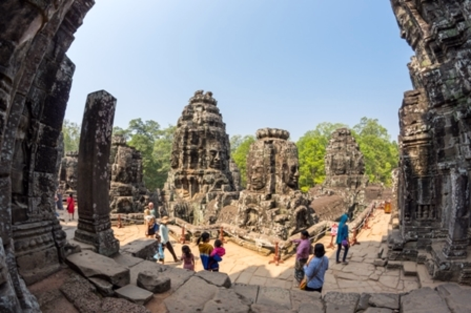 Visite d’Angkor Wat, joyau de l’empire khmer, puis d’Angkor Thom avec le Bayon et ses visages sculptés, le Baphuon et son Bouddha couché de 40 m, Phimeanakas, la Terrasse des Éléphants et celle du Roi Lépreux.