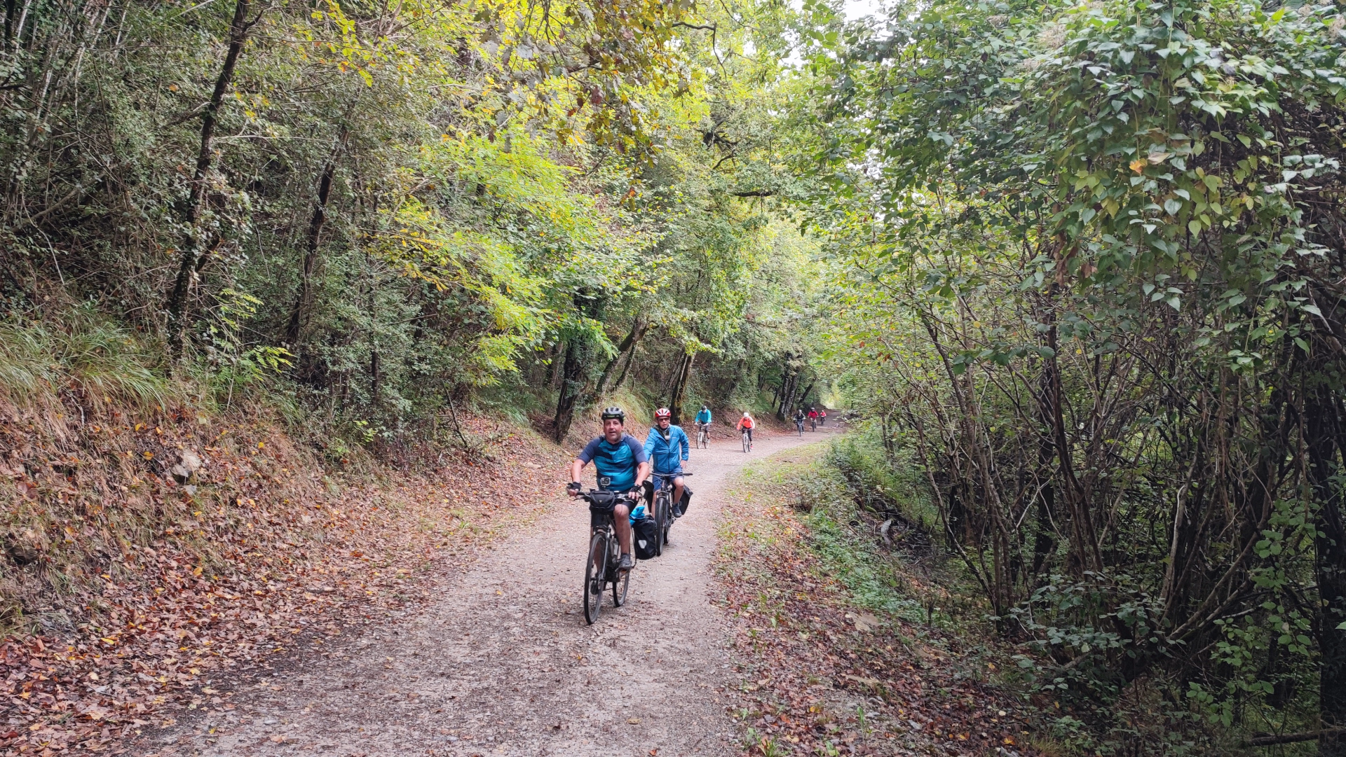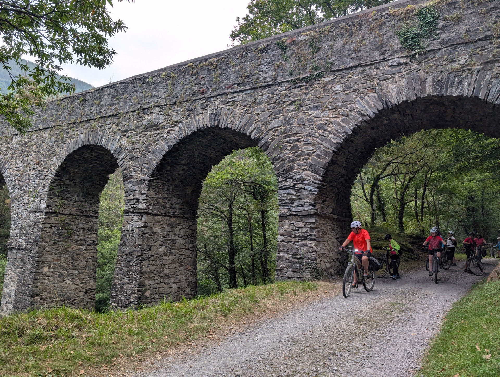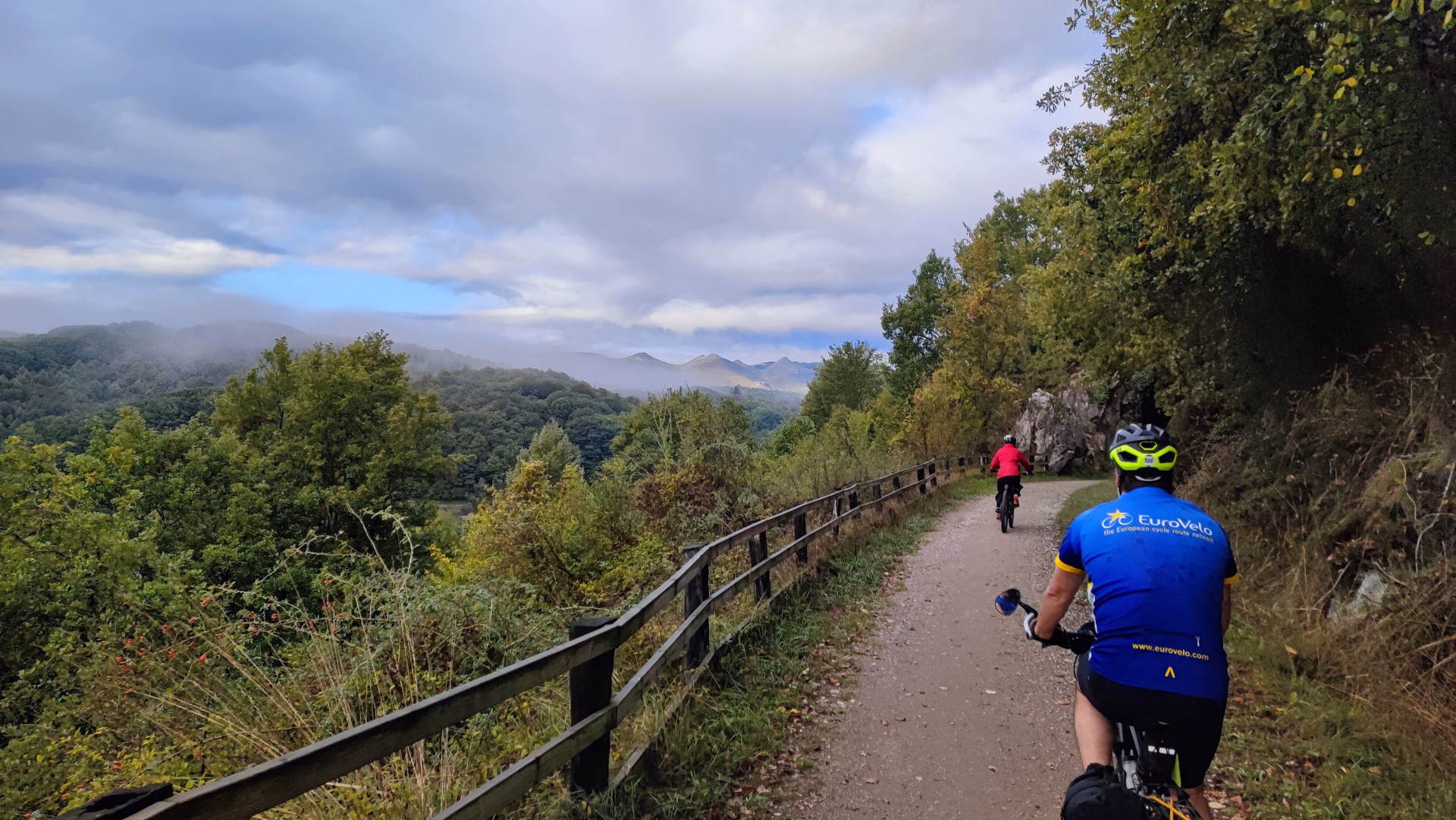 À Estella, nous suivons l'EuroVelo 1 jusqu'à Pampelune, célèbre pour ses remparts et sa gastronomie. De là, la Voie Verte du Plazaola nous plonge au cœur de la Forêt Atlantique. Depuis Lekunberri, l'itinéraire dans la vallée de Leitzarán enchaîne tunnels et viaducs dans un paysage vierge.