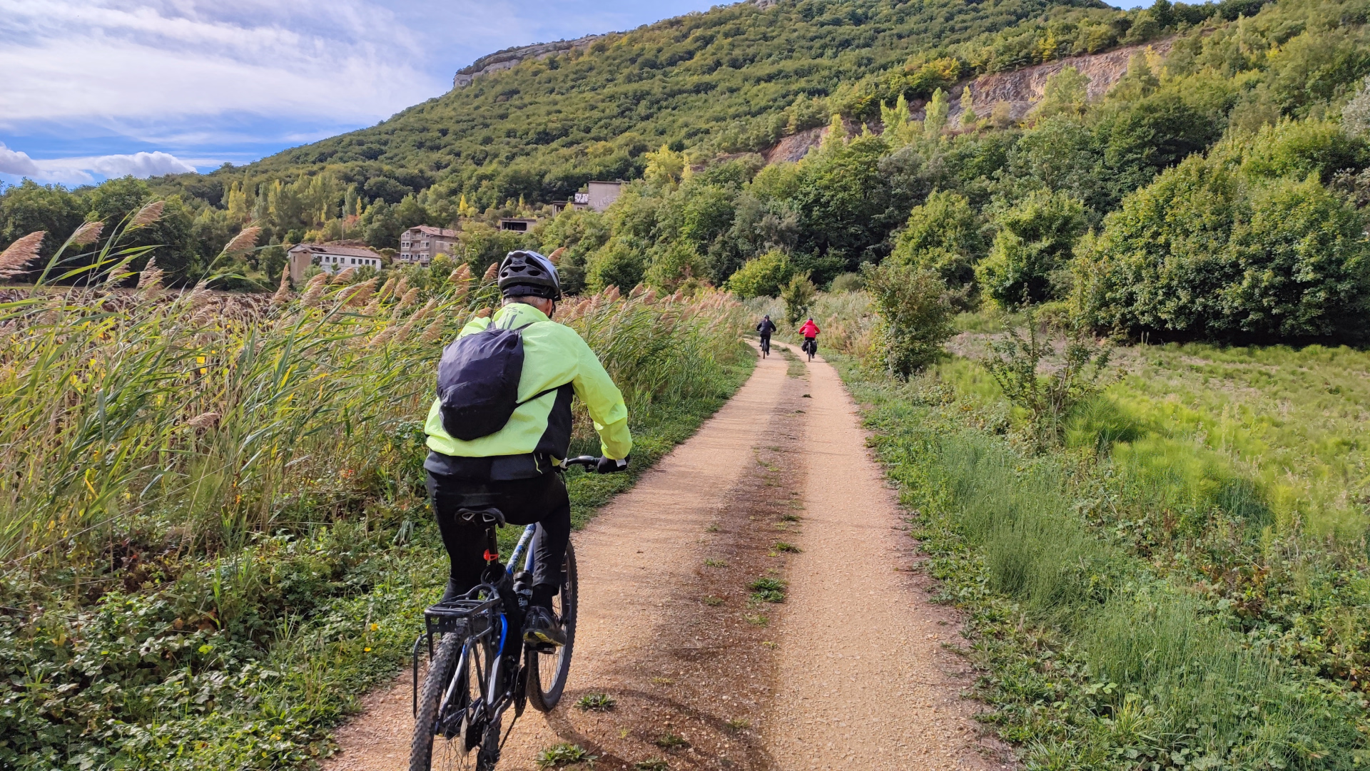 Notre voyage débute à Vitoria-Gasteiz, « Capitale Verte ». Nous empruntons la Voie Verte du Vasco-Navarro, traversant la sérénité de la Llanada Alavesa et les tunnels historiques vers la cité médiévale d'Antoñana.