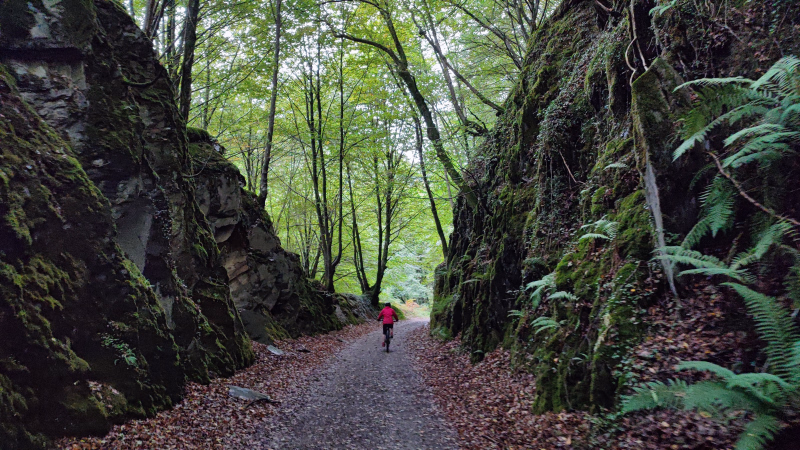 Le Festival des Tunnels et de la Mer. L'étape reine en descente. Nous nous plongeons au cœur de la vallée de Leitzarán, un site de forêt atlantique vierge, traversant la multitude de tunnels du Plazaola. Le chemin nous guide à travers Andoain et les bidegorris jusqu'à Saint-Sébastien (Donostia), se terminant à côté de l'iconique Plage de La Concha.