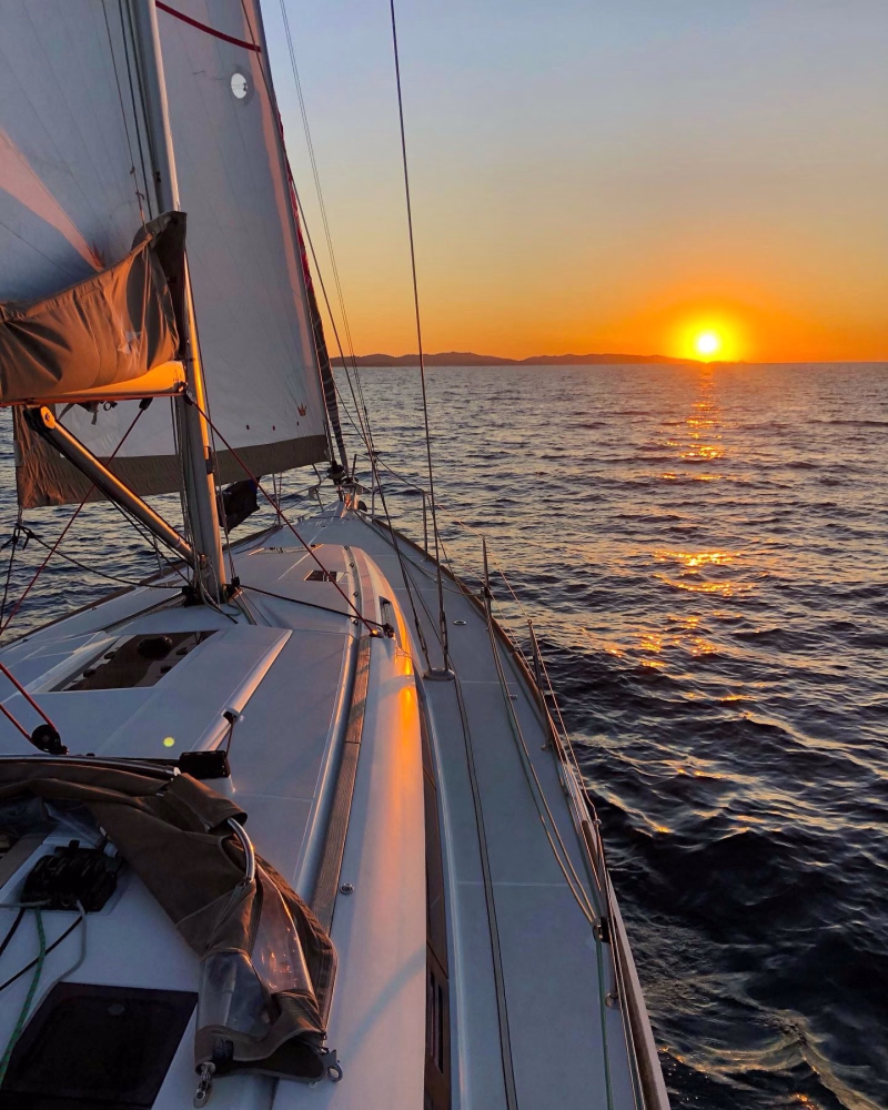 En route, vous vous exercez à la lecture de carte marine et aux règles de priorité pour maintenir votre cap. Une pause déjeuner au mouillage dans une crique abritée vous permet de maîtriser l'ancrage et de profiter du cadre naturel. L'après-midi, vous perfectionnez vos empannages et participez à un exercice de sécurité "homme à la mer" pour ancrer les bons réflexes. La journée s'achève par un dîner convivial et une nuit à bord après un débriefing sur les navigations à venir.