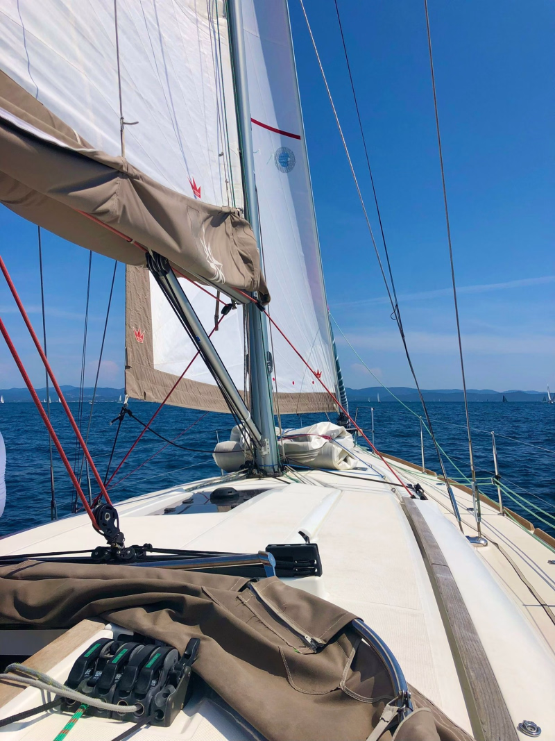 - Accueil et briefing : Rendez-vous sur le ponton à Hyères pour faire connaissance avec le moniteur et l’équipage. Présentation du programme, consignes de sécurité (gilet, déplacements, VHF) et point météo. Tour du bateau pour identifier les équipements : voiles, winchs, guindeau, instruments.