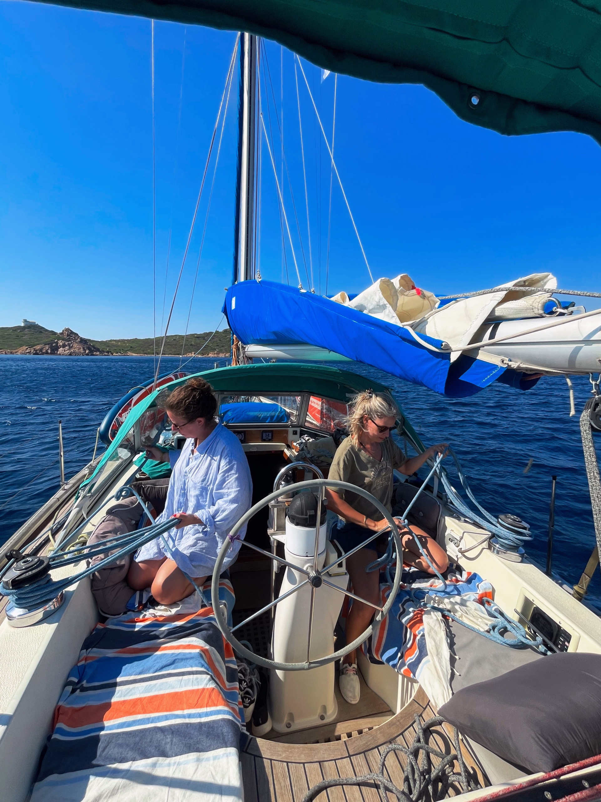 Accueil entre 14h et 16h à Ajaccio. Vous rencontrez Céline et les deux autres participantes, avant de procéder ensemble à l’avitaillement du voilier. Une fois installées à bord, Céline vous présente le brief de sécurité ainsi que les grandes lignes du programme. En fin d’après-midi, vous larguez les amarres pour une première navigation d’1 à 2h, le temps de prendre contact avec le bateau et de goûter à la douceur du large. La soirée se déroule au mouillage, dans une crique paisible, propice à la détente et à la déconnexion. Nuit à bord.