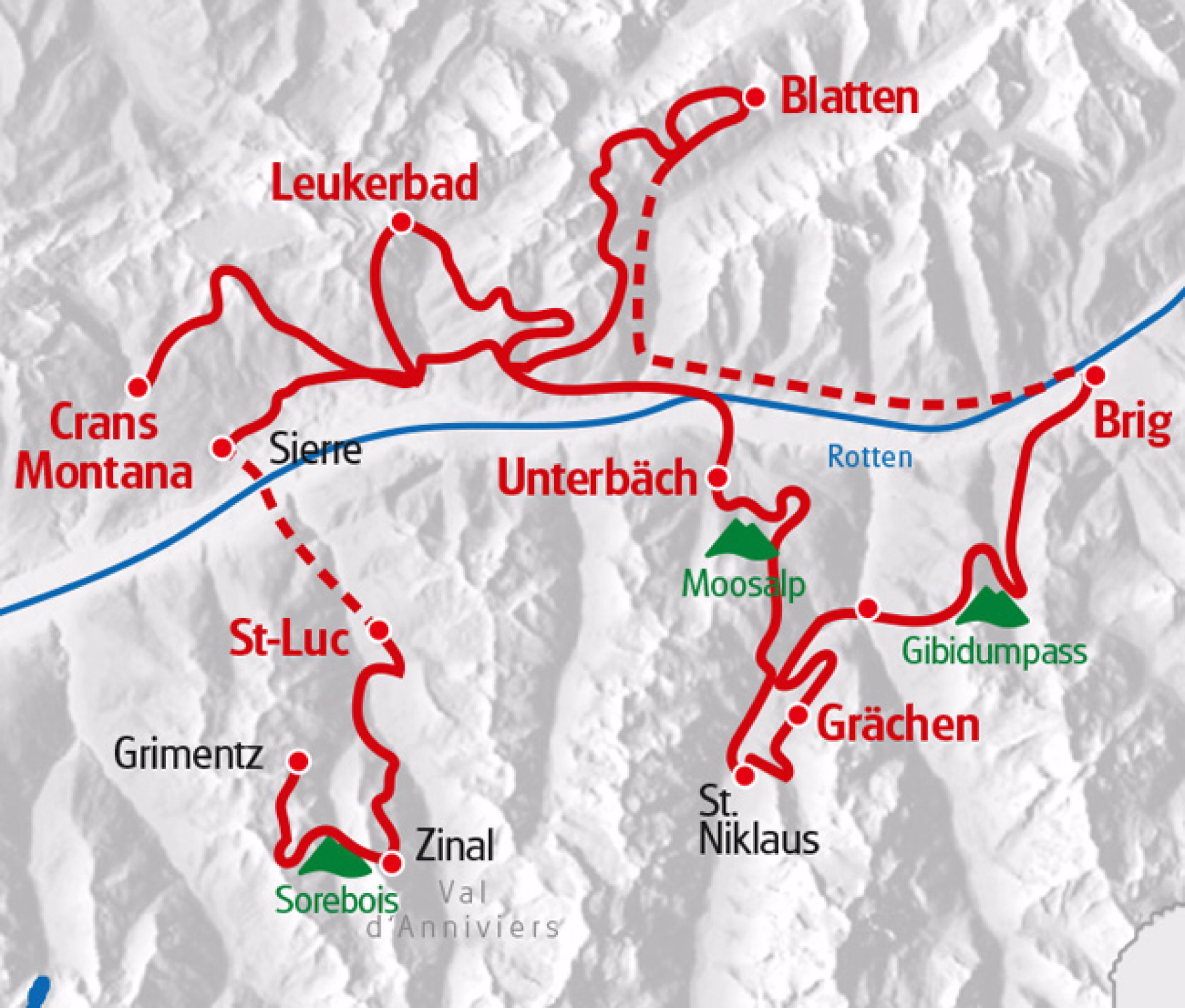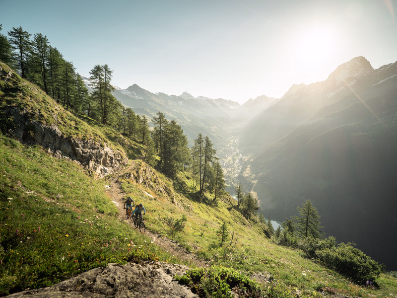 Entre sentiers alpins spectaculaires, cols d’altitude et villages suisses authentiques, cette traversée à VTT du Valais est une immersion dans les plus beaux reliefs des Alpes suisses. Depuis les hauteurs de Crans-Montana, vous enchaînez des singletrails variés jusqu’aux sources chaudes de Loèche-les-Bains, avant de rejoindre les versants ensoleillés dominant la vallée du Rhône. Le parcours vous conduit ensuite vers l’élégante Zermatt, dominée par le Cervin, puis vers le col du Gibidum, au panorama époustouflant. Après une halte à Brigue, le voyage se poursuit dans le Lötschental sauvage, avant de s’élancer sur les pentes du Val d’Anniviers et de s’achever par une descente grisante jusqu’à Grimentz. Riche en dénivelés techniques, en paysages contrastés et en découvertes culturelles, cet itinéraire ravira les passionnés de VTT en quête de grands espaces et d’émotions alpines.