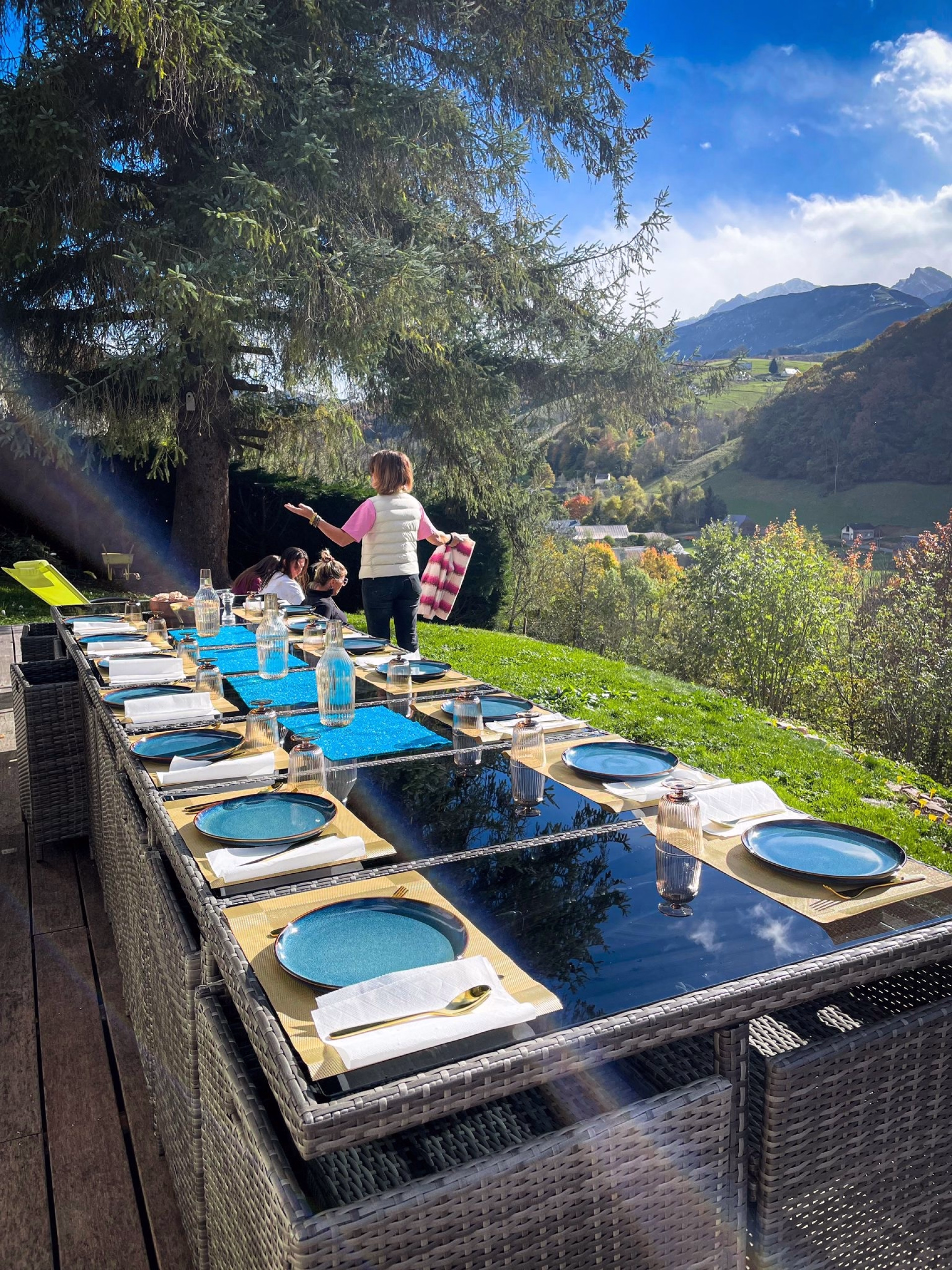 - Canapé cosy pour 8 personnes face aux montagnes