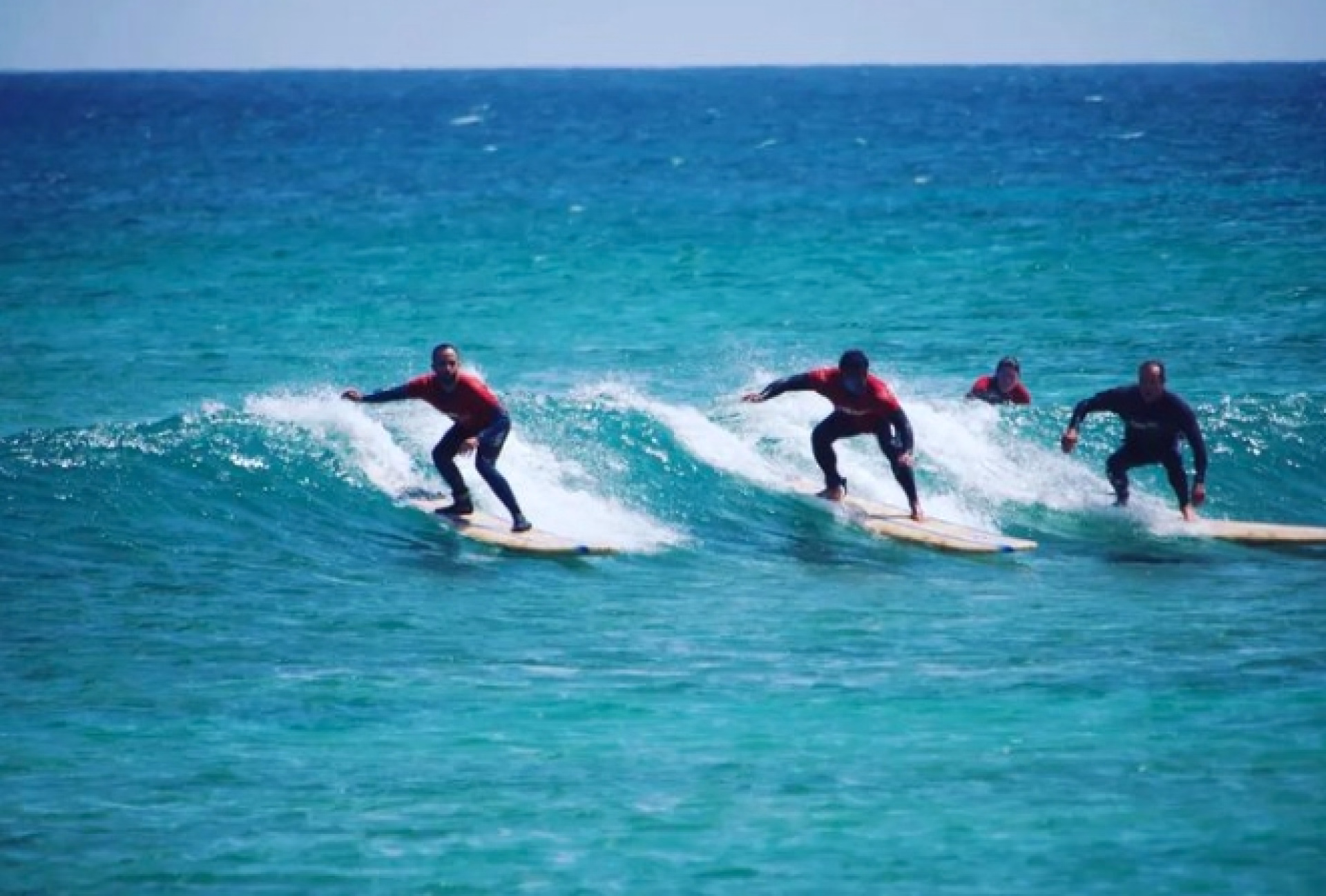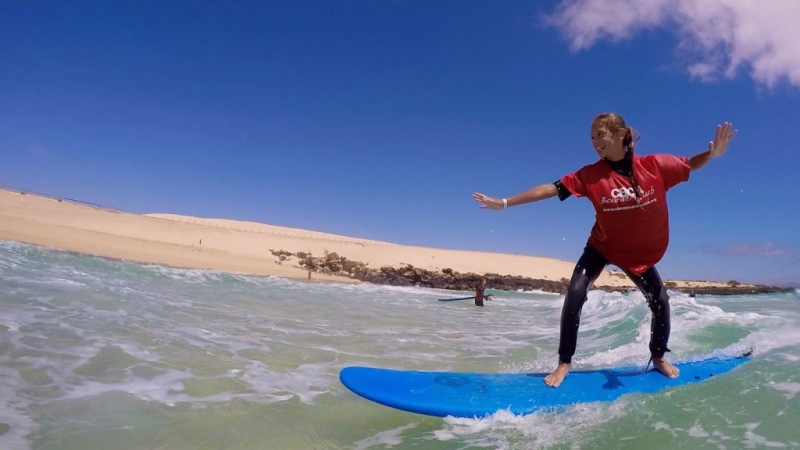Nous proposons une gamme complète de cours, du niveau débutant au niveau avancé, à Fuerteventura. Chaque jour, votre moniteur vient vous chercher à votre hôtel. Le transfert est gratuit. Il vous emmène sur les meilleurs spots de la Côte Nord. Vagues faciles, à la recherche de la vague parfaite ! L’école de surf vous fournit une planche adaptée à votre niveau.