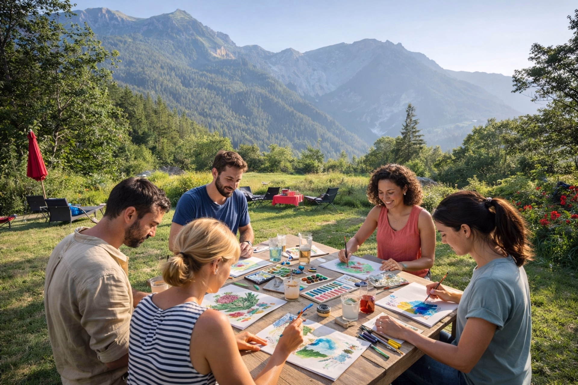 Les soirées se vivent dans une atmosphère douce et conviviale, propice aux échanges et aux moments partagés. Sans recherche de performance, ce séjour propose simplement de créer, bouger et ralentir, pour repartir apaisé, inspiré et revitalisé.