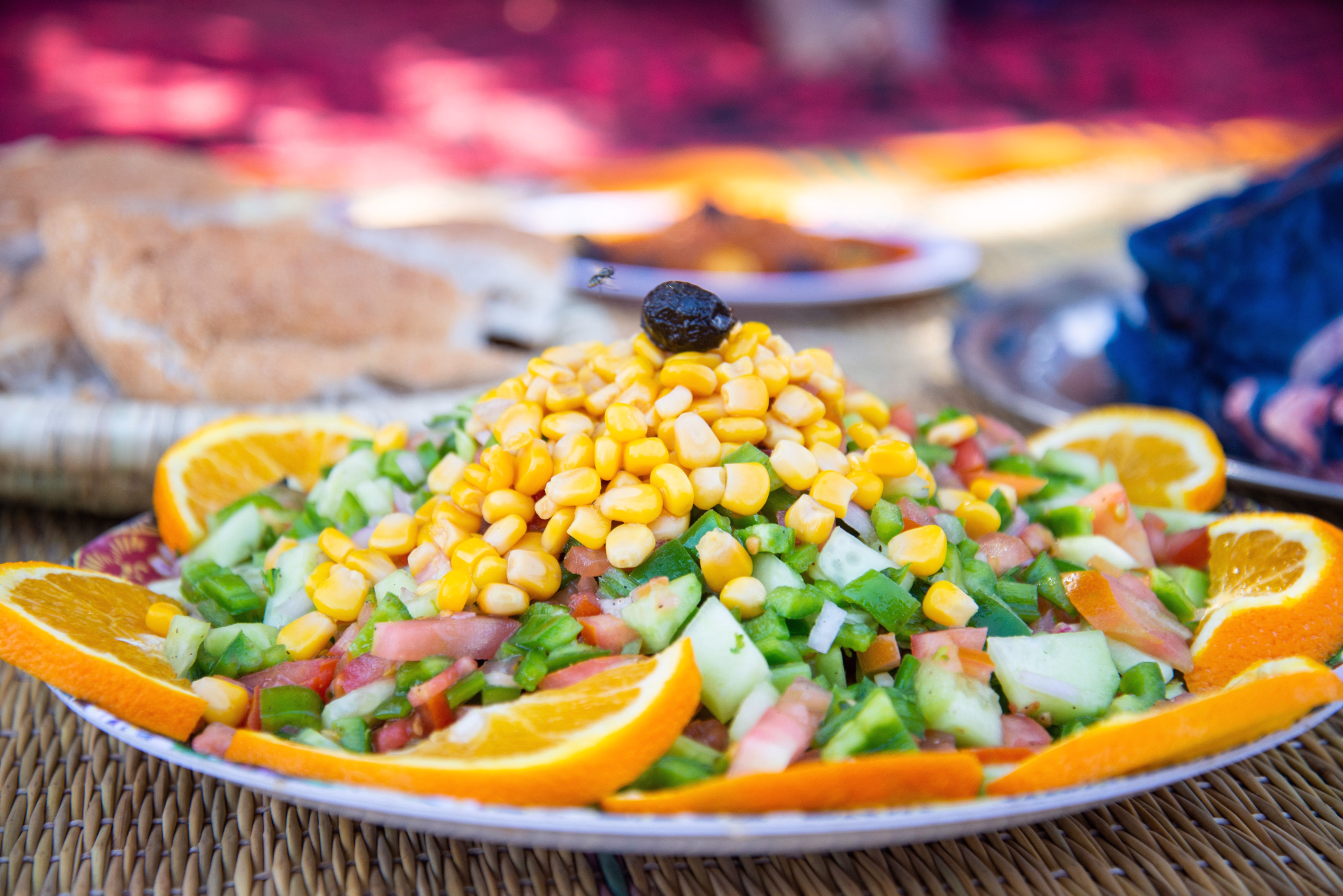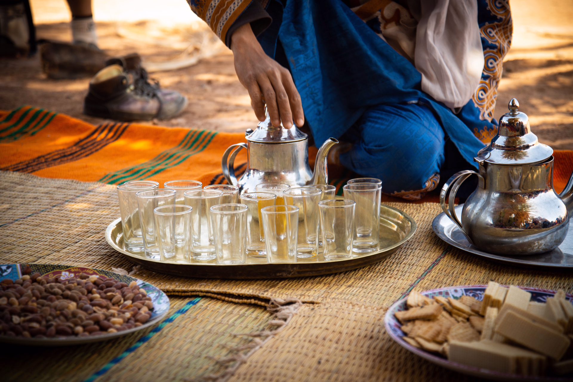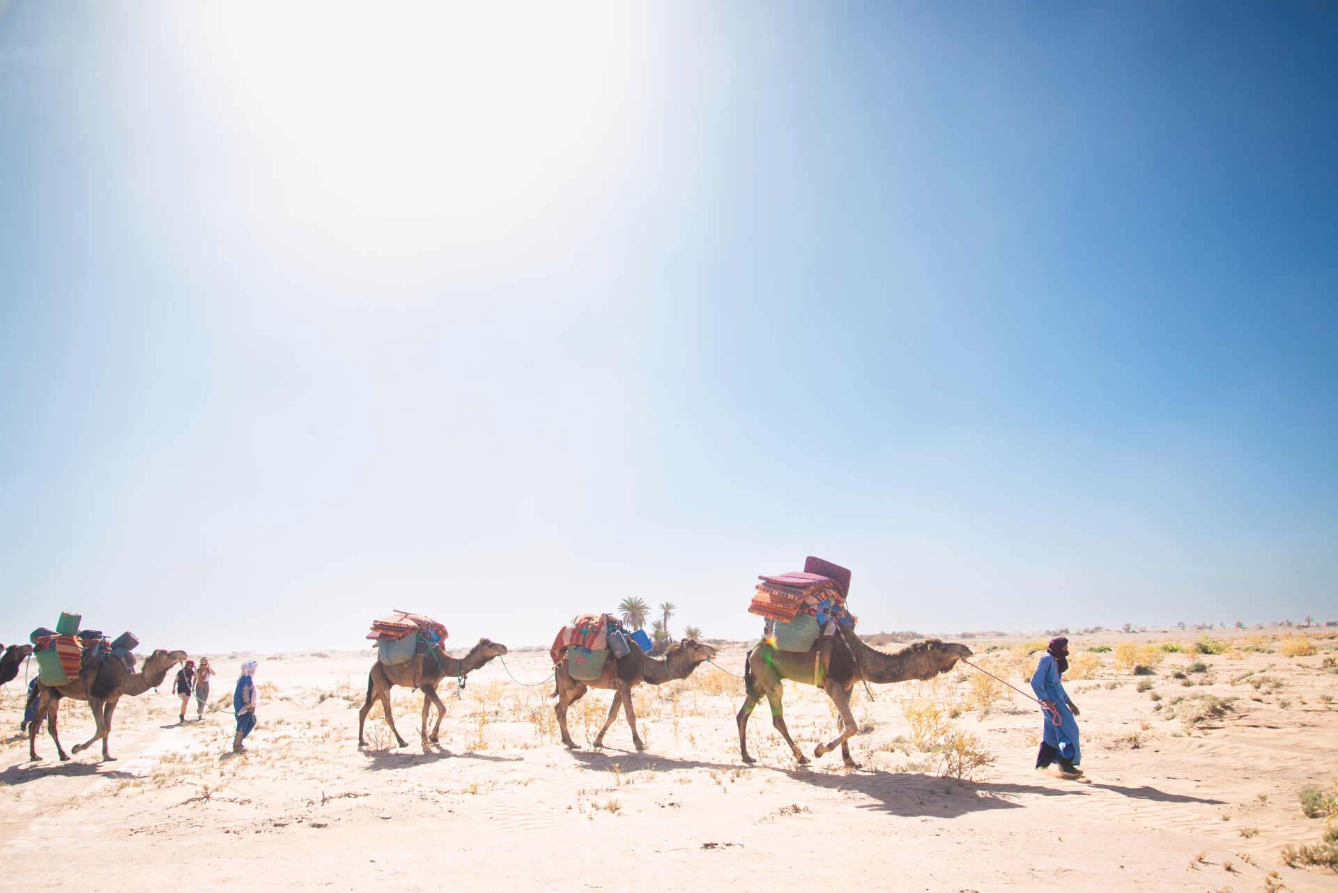 Depuis M’Hamid, une marche facile (20 minutes) vous conduira à votre bivouac, installé en pleine nature, où vous rencontrerez votre équipe de nomades et profiterez d’une première séance de yoga.