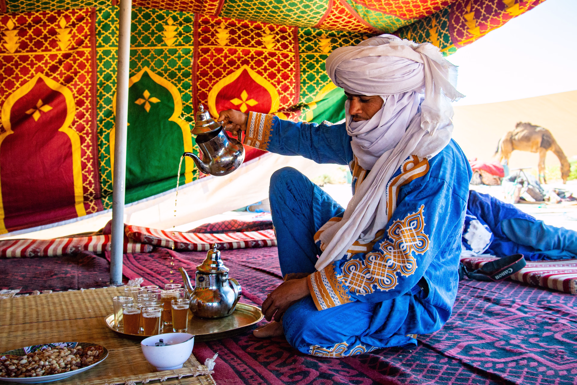 Un déjeuner en groupe est prévu à Ouarzazate avant de poursuivre votre route vers la vallée du Drâa, connue pour ses mille kasbahs et ses vastes palmeraies. Cette traversée vous offrira des panoramas inoubliables jusqu’à votre arrivée à M’Hamid El Ghizlane, aux portes du désert.