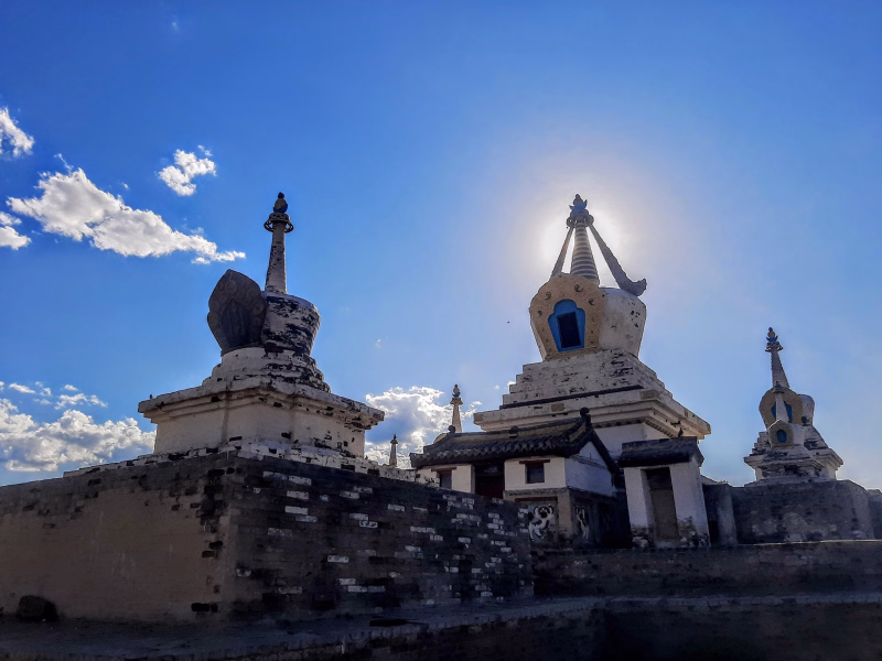 Notre première halte sera le monastère Erdene Zuu, le plus ancien monastère bouddhiste à structure fixe en Mongolie, avec ses imposants murs blancs ponctués de stupas qui évoquent l’harmonie entre spiritualité et histoire. Vous aurez l’occasion de déambuler parmi les temples et d’admirer l’architecture, tout en vous imprégnant de la quiétude et de la sagesse de ce lieu sacré.